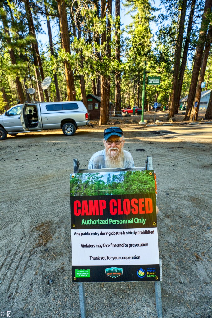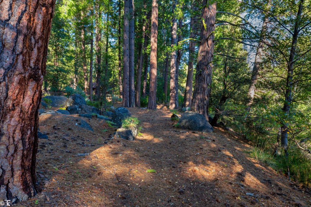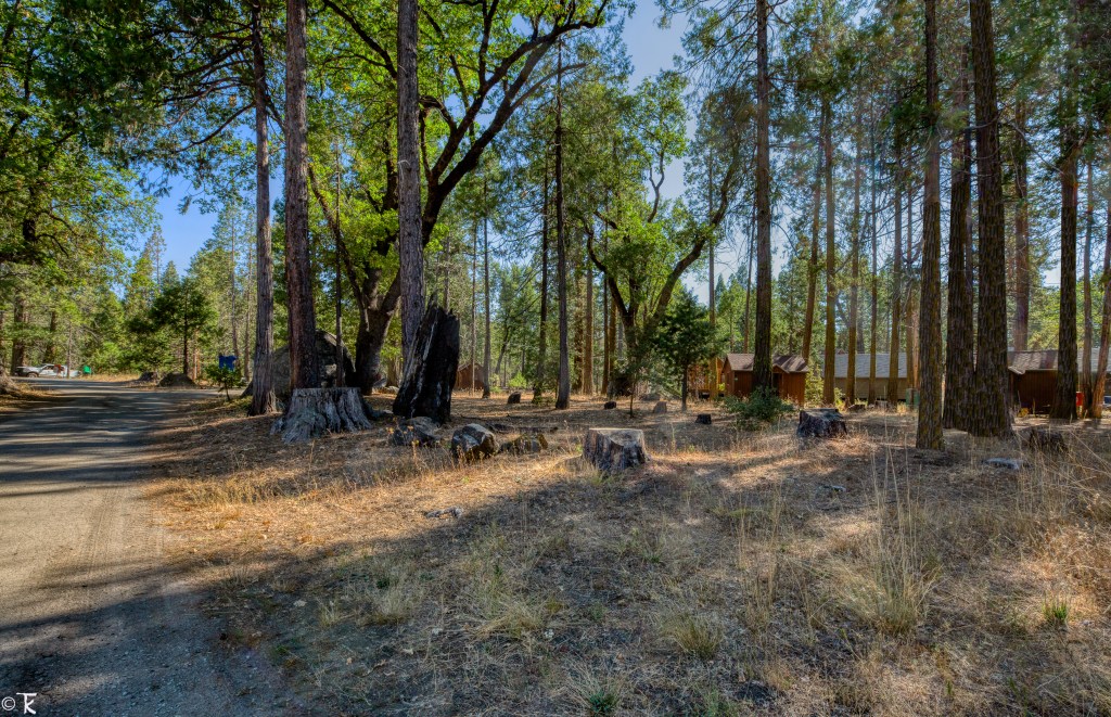 While on our stroll through Camp Mather, we re-traced our all too familiar route from our festival days, yet much of it—between fire damage, warming climate-enabled insect damage and the logging that followed—appeared not that familiar at all any more.